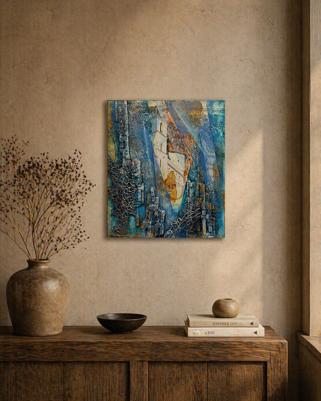 Как превратить старый календарь, чайные пакетики и упаковочный картон в фактурную интерьерную картину с эффектами камня и внутреннего свечения. Без дорогих материалов и специальных навыков рисования и живописи.