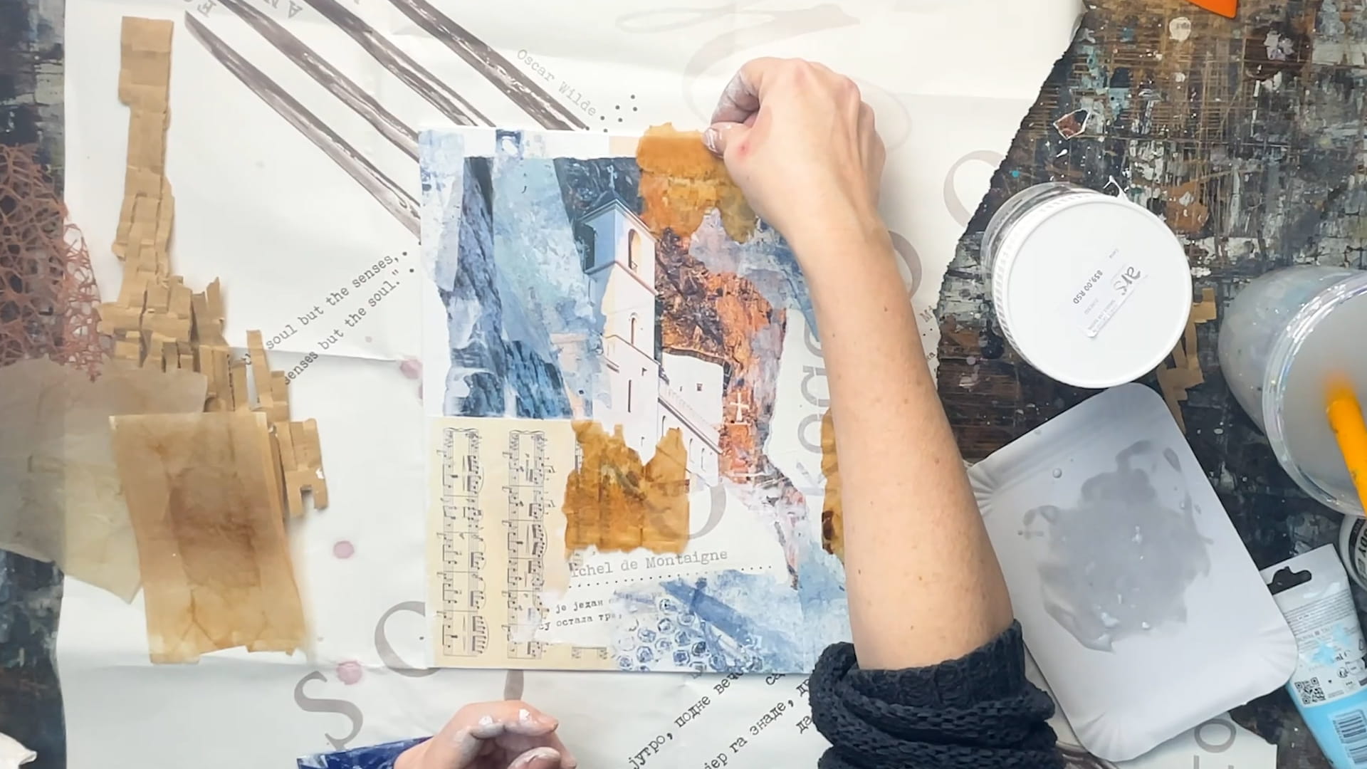 Мы работаем в технике коллажа и микс-медиа, где важнее чувство ритма и баланса, которому вы научитесь